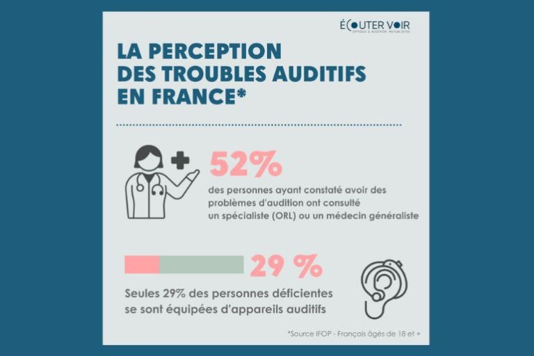 Écouter Voir, réseau d’optique et d’audition mutualiste, publie les résultats d’une enquête* réalisée en commun avec l’IFOP sur la perception des troubles auditifs en France. Ce sondage révèle notamment que moins d’un tiers des personnes déficientes (29 %) sont équipées d’appareils auditifs. Pour 90 % des Français, l’acquisition d’appareils auditifs est un dispositif onéreux. Près d’un Français sur deux (45 %) considère d’ailleurs que le prix est le premier frein à l’achat d’appareils auditifs. Pourtant, depuis 2019, le 100 % Santé permet de proposer des aides auditives avec un zéro reste à charge. Si 63 % des Français déclarent avoir entendu parler du dispositif, seuls 28 % sont en mesure de donner la bonne définition du 100 % Santé. Il ressort également de cette étude que les Français se préoccupent peu de leurs problèmes d’audition. Ainsi, près de la moitié des personnes concernées par une perte d’audition ne consulte pas de spécialiste et 1 personne sur 5 (20 %) n’a pas entrepris de démarche. 82 % des personnes interrogées estiment qu’un proche a plus de chance de convaincre une personne de se faire dépister. Plus de la moitié des Français (54 %) compte dans son entourage proche (cercle familial, amical ou professionnel), au moins une personne souffrant de problèmes auditifs. Parmi eux, ils sont 44 % à les inviter à consulter un spécialiste de la santé, 34 % à suggérer l’acquisition d’une aide auditive, et 26 % à les inciter à faire un bilan auditif. Ils sont d’ailleurs 85 % à penser qu’à partir de 50 ans, un bilan auditif devrait être systématiquement proposé. Cette étude dévoile, en outre, que les moments festifs mettent en difficulté une grande majorité des personnes souffrant d’une perte d’audition (62 %). Pourtant, 94 % des répondants estiment que l’appareillage est perçu comme étant un moyen de lutter contre l’isolement social. Aujourd’hui, 66% des personnes interrogées estiment ne pas forcément remarquer qu’une personne porte un appareil auditif et pour 70 % des Français, les personnes appareillées ne sont pas stigmatisées.