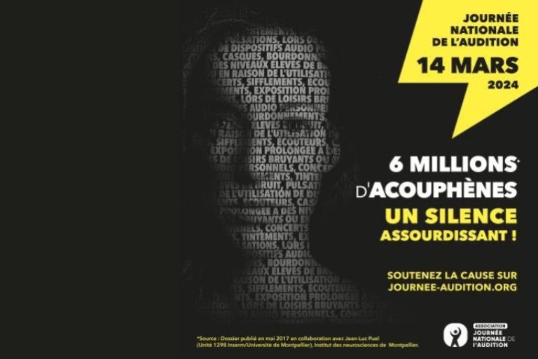“6 millions d’acouphènes, un silence assourdissant !” Voici le message que souhaite faire passer l’association JNA à l’occasion de la 27ᵉ édition de la Journée Nationale de l’Audition qui aura lieu le 14 mars 2024. Cette année, l’action aura pour enjeu de contribuer à une meilleure reconnaissance des acouphènes et de leurs conséquences. À cette occasion, l’association rappelle qu’il y a 10 ans elle s’était déjà mobilisée autour de ce thème central de la santé auditive. En effet, en 2014, la première enquête grand public sur les acouphènes révélait qu’environ 16 millions de personnes souffriraient de sifflements ou bourdonnements dont 7 millions de manière permanente. Pour savoir quelle est la situation actuelle, la JNA, en partenariat avec l’institut Groupe Ifop mène l’enquête en vue de réaliser un nouveau baromètre. S’il est vrai que l’information concernant les acouphènes est régulièrement relayée dans les médias, la JNA reste convaincue qu’il est nécessaire d’amplifier les actions sur ce sujet. Selon elle, “les comportements à risques sont toujours aussi ancrés” et nombre de cas de survenues des acouphènes pourraient être évités en protégeant son capital auditif, notamment lors d’exposition aux bruits et aux expositions sonores.
