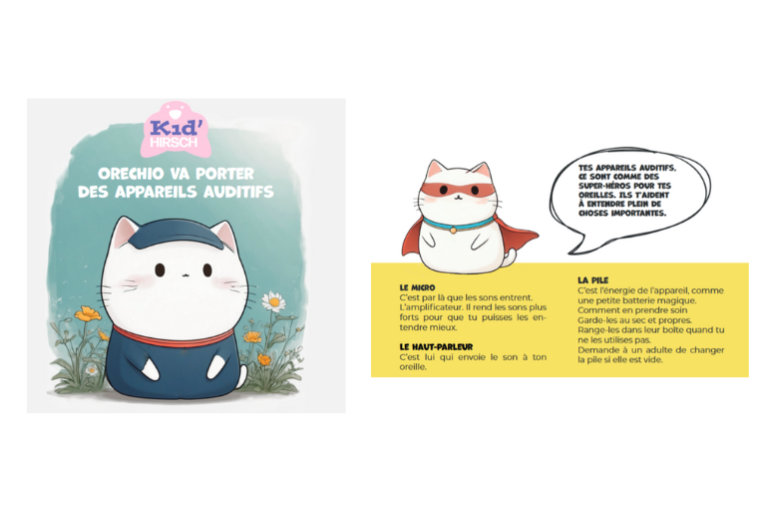 Accepter de porter un appareil auditif peut être un véritable défi pour un jeune enfant. Entre peur d’être différent, inquiétudes et manque de repères, l’appareillage auditif soulève souvent de nombreuses questions. Face à ce constat, Zoé Alexandre Hirsch, jeune audioprothésiste de 21 ans, a imaginé un outil pédagogique innovant : Orechio va porter des appareils auditifs, un livret illustré conçu pour les enfants dès 3 ans, leurs familles et les professionnels de santé qui les accompagnent. Ce projet est né d’une expérience de terrain riche : plusieurs stages réalisés au cours de sa formation, auprès d’audioprothésistes spécialisés dans la prise en charge pédiatrique, ainsi qu’un stage d’étude ORL à l’hôpital pédiatrique Robert Debré. Ces rencontres et observations ont convaincu la jeune professionnelle de l’importance de proposer un support adapté, ludique et rassurant. Le livret met en scène Orechio, un petit chat attachant qui découvre les bienfaits de ses appareils auditifs, présentés comme un super pouvoir. À travers une histoire simple, ponctuée d’explications claires et de jeux, l’enfant apprend à comprendre ce qu’est l’audition, pourquoi il porte un appareil, et comment s’en servir au quotidien. Les illustrations douces et apaisantes, signées Caroline Hirsch, la tante de l’autrice, contribuent à créer un univers visuel familier, inclusif et réconfortant, en lien avec l’imaginaire des plus petits. Pensé comme un véritable outil de médiation, Orechio va porter des appareils auditifs facilite le dialogue entre les enfants, les parents et les professionnels de santé. Il peut être utilisé en cabinet comme à domicile, dès les premières séances d’appareillage. Un encart personnalisable permet d’y ajouter les coordonnées de l’audioprothésiste, renforçant ainsi le lien entre la famille et le praticien. Destiné aux audioprothésistes, ORL, orthophonistes, structures de soins…, ce livret vise à rendre le parcours d’appareillage plus accessible, plus clair, et surtout plus serein pour les jeunes patients. L’ouvrage est d’ores et déjà disponible à la commande sur le site http://www.kidhirsch.fr/avec des tarifs dégressifs. Les premières livraisons sont prévues à partir du 5 mai 2025. Et ce n’est qu’un début : Zoé Alexandre Hirsch, engagée pour une approche humaine et bienveillante du soin, prévoit de compléter cette initiative avec le lancement prochain d’une gamme pédiatrique audio. Un projet qui s’inscrit dans une collection plus large dédiée à l’accompagnement des enfants malentendants.