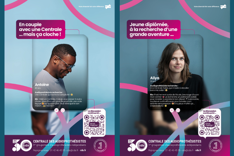 La CDA célèbre ses 30 ans avec une campagne qui sort des sentiers battus. Séduire. Matcher. Construire. Trois mots pour résumer trois décennies d’engagement aux côtés des audioprothésistes. Inspirée des codes des sites de rencontre, la campagne fait le choix de l’émotion et de l’authenticité. Pas de posture. Pas de promesse artificielle. La relation avant tout. « On se séduit, on match, on date, on construit ensemble », résume Jérôme Rossignon, Responsable Marketing et Communication. Dans la continuité de la campagne « Le Saviez-vous ? », la CDA affirme son ADN créatif et humain. L’objectif est clair : attirer de nouveaux audioprothésistes sans renier ses fondamentaux. Proximité, engagement, accompagnement. Et un message central : « Votre diversité fait notre différence ». Déployée tout au long de l’année, la campagne se décline en 12 épisodes. Chacun met en lumière un audioprothésiste, son parcours, ses enjeux et les réponses sur-mesure apportées par la CDA. Un QR code prolonge l’expérience en invitant à une conversation immersive, scénarisée comme un échange sur un site de rencontre : on se découvre, on échange, on décide d’avancer ensemble. « Pour nos 30 ans, nous voulions une campagne qui parle vrai, qui parle fort et qui parle cœur. Notre relation avec les audioprothésistes est notre colonne vertébrale : ils doivent sentir que nous sommes faits pour matcher » précise Jérôme Rossignon. Emmanuelle Thilot, Cheffe de projet Marketing et Communication, ajoute : « Jouer avec les codes des sites de rencontre, c’est révéler notre nature profonde : une centrale proche, engagée, humaine, attachante, alliée du quotidien. Cette campagne est une invitation à une relation authentique et durable ». À 30 ans, la CDA ne regarde pas seulement le chemin parcouru. Elle affirme surtout sa manière d’avancer : en construisant des relations choisies, sincères et pensées pour durer.
