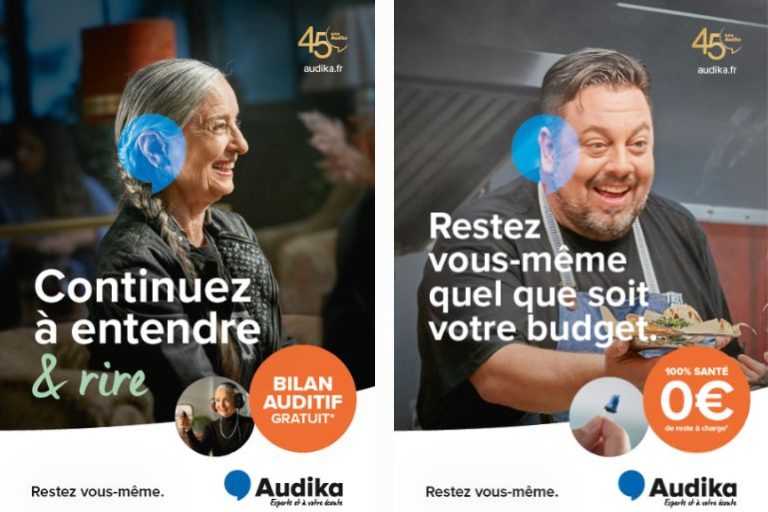 Pour accompagner cette nouvelle dynamique, Audika annonce parallèlement le lancement d’une campagne de communication. Dans la lignée des précédentes campagnes, deux nouveaux spots TV racontent les histoires de deux personnages, Maria, 65 ans, et Niko, 55 ans, qui, grâce à leurs aides auditives et au suivi personnalisé des experts Audika, poursuivent leur vie sociale et professionnelle comme avant. Cette campagne de communication 360 est déclinée en TV et replay TV, sur les plateformes web d’Audika, les réseaux sociaux BtoC et l’affichage dans les 610 centres de l’enseigne.